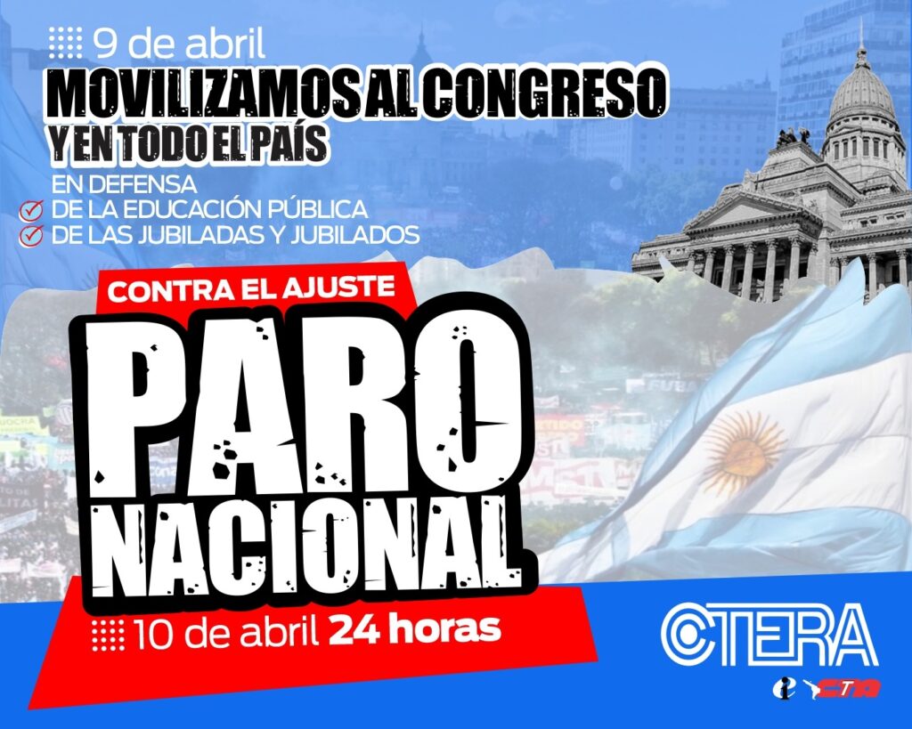 Y el 10 de abril se concretará un Paro Nacional Docente, por 24 horas y sin asistencia a los lugares de trabajo, en demanda de:
